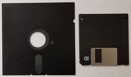 The discs available at that time were the 5.25-inch or 3.5-inch variety. The 3.5 eventually took over because it was more durable and held more data (1.44 MB as opposed to about .9 MB), but for years the two ran, literally, side-by-side. The 3-inch discs I required were, of course, foreign, and difficult to get.